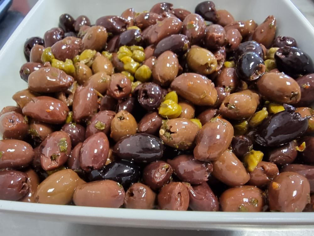 Pyszne oliwki z kaparami pochodzące z Włoch. Skład : czarne drylowane oliwki 62,5%, olej słonecznikowy 30%, kapary 7,5%, sól, przyprawy (czosnek,papryczka chilli, pietruszka). Przeciwutleniacz : E300, E330